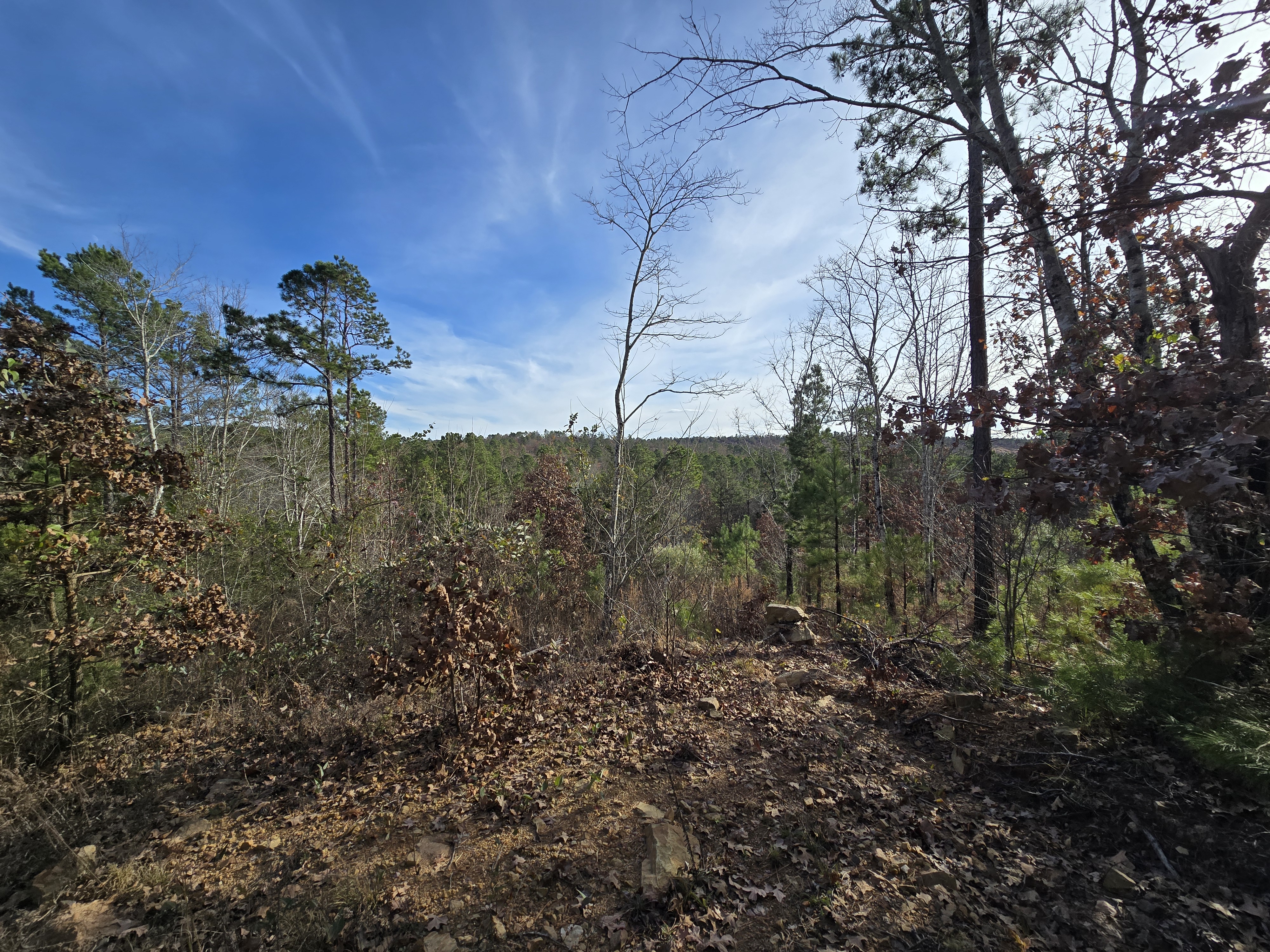 Ø The property is covered with a young stand of timber that is native to south eastern Oklahoma including shortleaf yellow pine and a diverse variety of oak trees, red bud, elm, eastern red cedar and hickory.
